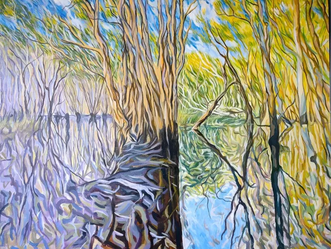 Brian Purcell is a painter/poet from Bellingen working in landscape and still-life. He’s had two successful one-person shows of paintings, The Day on Fire and Estuary, at the Shop Gallery in Glebe NSW. He’s a featured artist at Bluethumb and has been a finalist in their Art Prizes in 2022-23.