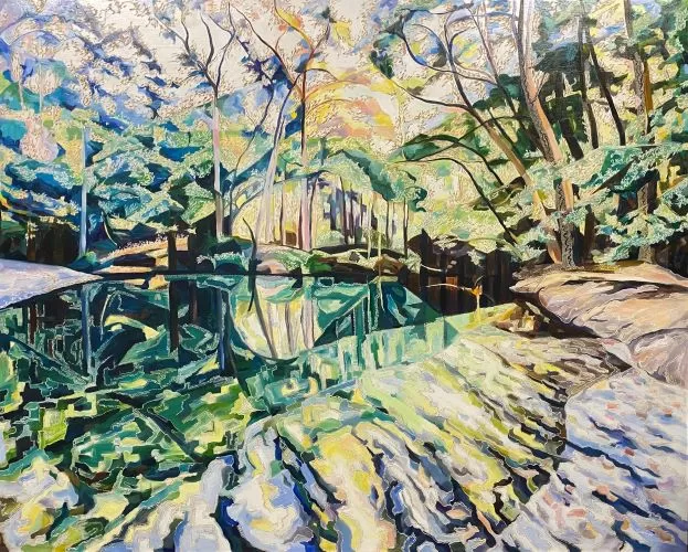 My greatest inspiration for my work is the light and energy I find in the Australian bush. I resonate with the spirit of place & delight in finding symbiotic configurations in nature. The reductive process of engraving into the paint with textured gestural marks, reveals light and irradiates the atmosphere.