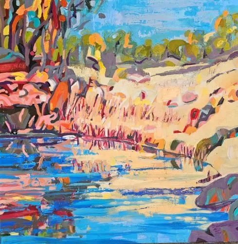 I have exhibited on the mid north coast since the 1980s, both in solo and group exhibitions.I am essentially a contemporary/abstract expressionist, working in the mediums of watercolour and oils. My inspiration comes from my immediate (landscape) environment. This exhibition focusses on colour and mark making, rather than representation, to capture the vibrancy of our mid north coast environment.
