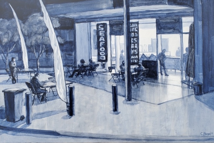 As an artist, Chris has always been interested in painting ordinary things, recording the clutter and things we take for granted in our ordinary lives. Chris’s paintings of rural life in Dorrigo are down to earth; farm animals painted with a subtle sense of humour, rural buildings with attendant washing lines, and gorgeous green landscapes.