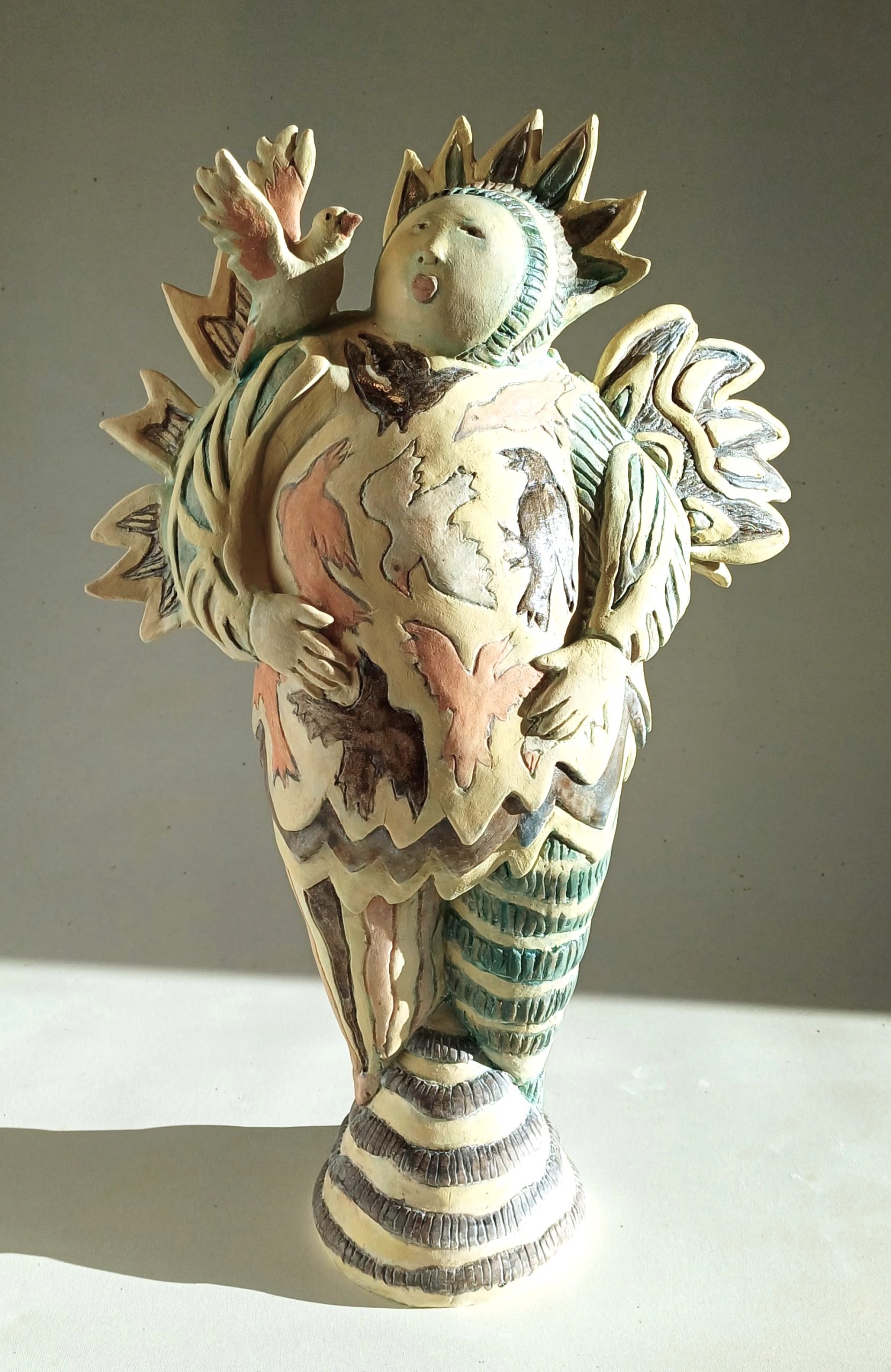 I have worked with clay for 45 years so now feel I am well into my genre of exploring sculpture. My preferred subject is the human body and face, however I venture into other subjects as well, depending on each concept. I am a lover of animals and birds so they inevitably find their way into my work. Every new project is so enjoyable to me I cannot imagine a life doing anything other than this.